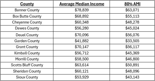 4. Household income must be at or below 80% of the median area income by county